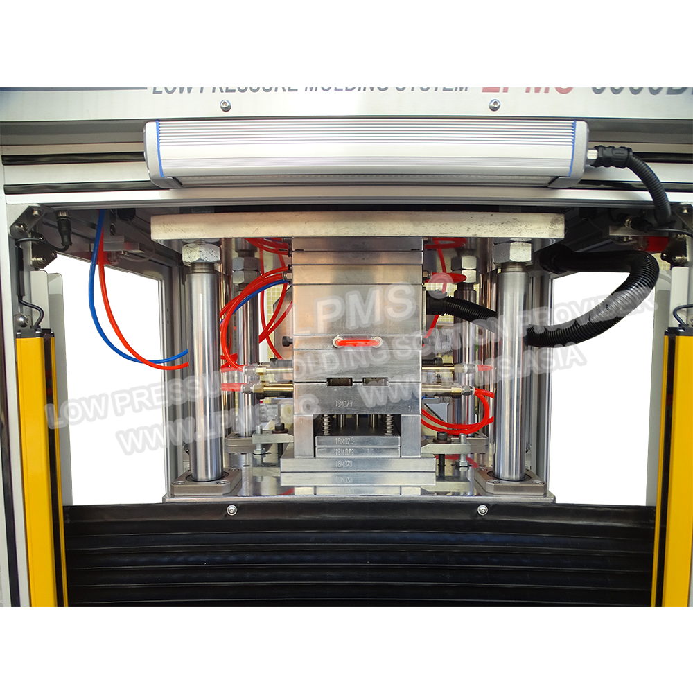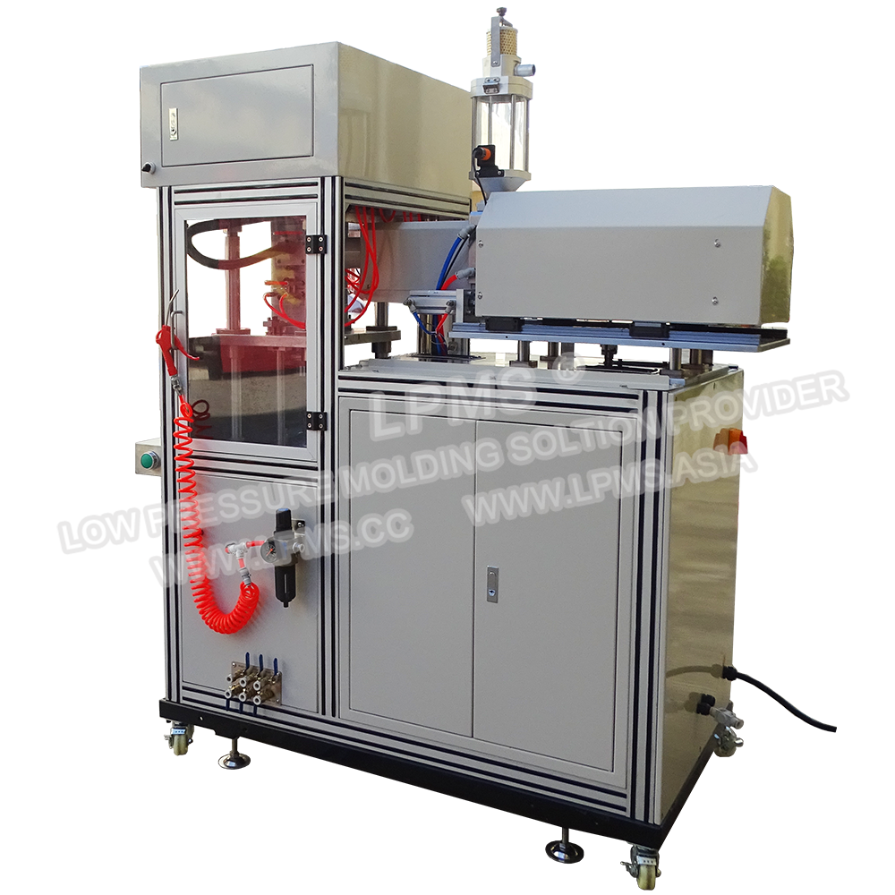 合模采用氣液增壓缸,適合注膠面積較大、注膠量大產品的大批量生產。