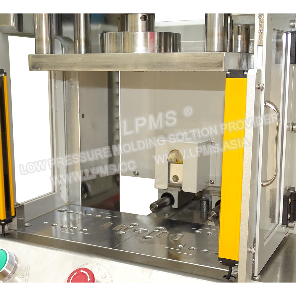 側(cè)式熱熔膠低壓注塑機(jī)系列的注膠咀位于模具側(cè)面,當(dāng)產(chǎn)品較大時模具只能設(shè)計為一模一穴,采用側(cè)式注膠可避免在產(chǎn)品正上方注膠而留下進(jìn)料痕影響產(chǎn)品美觀。適合封裝尺寸較大或外形復(fù)雜產(chǎn)品。