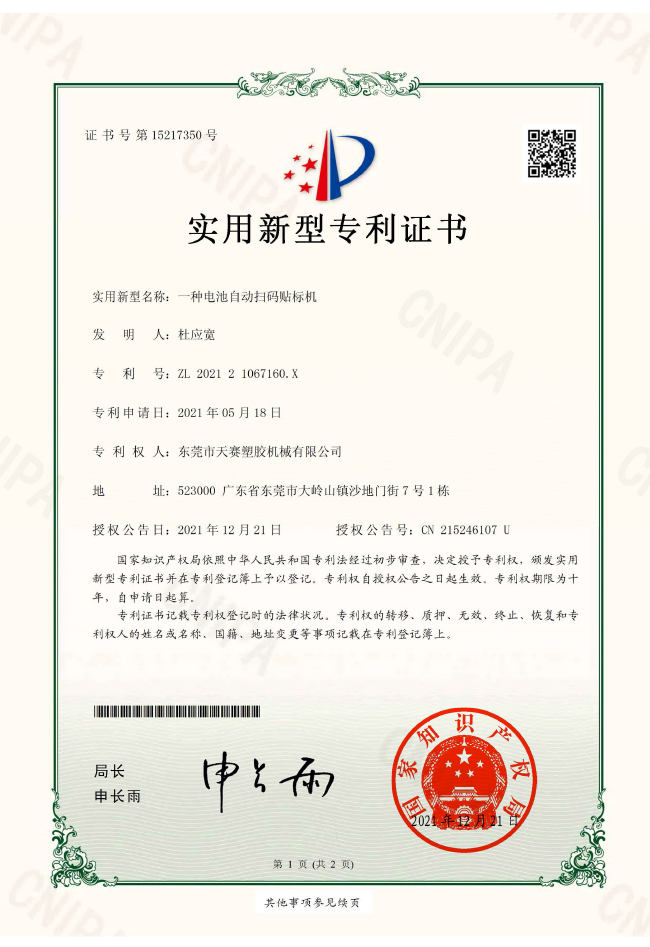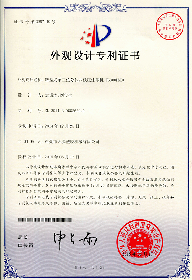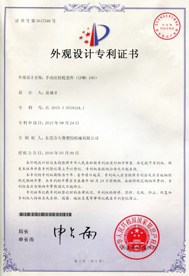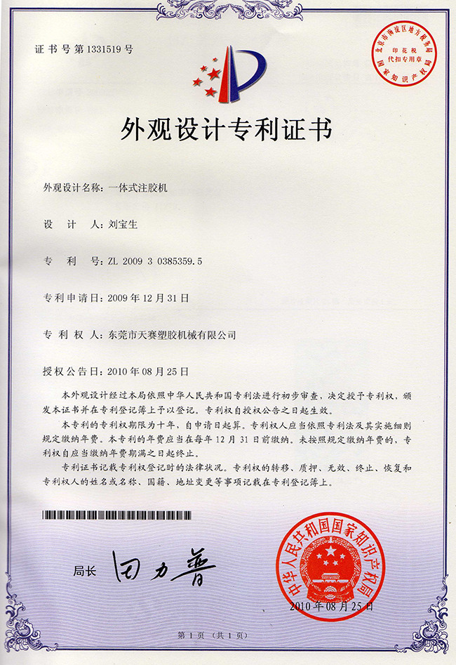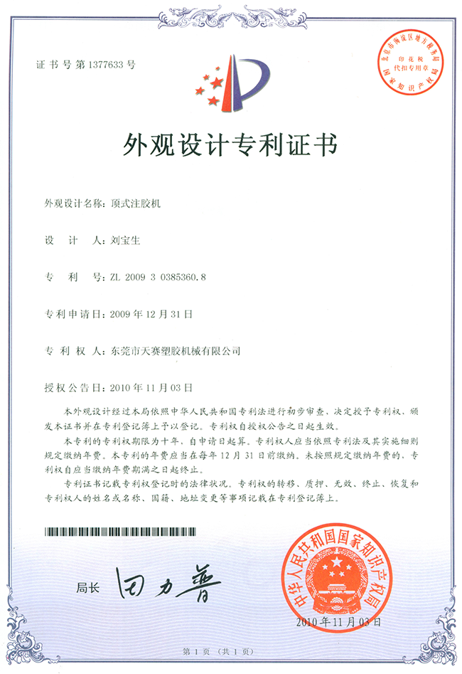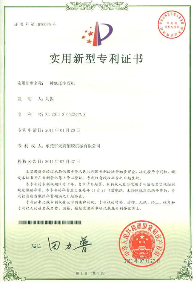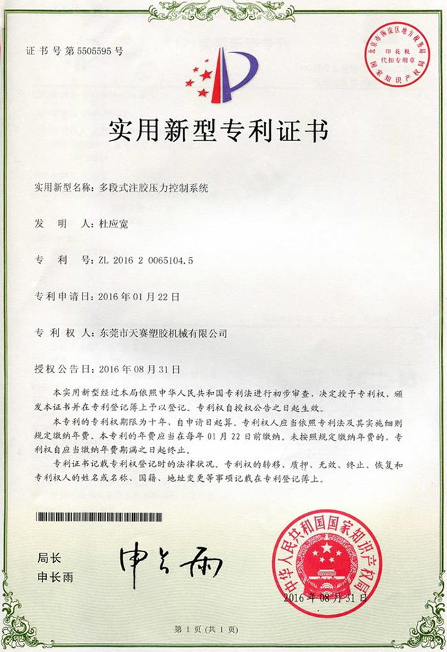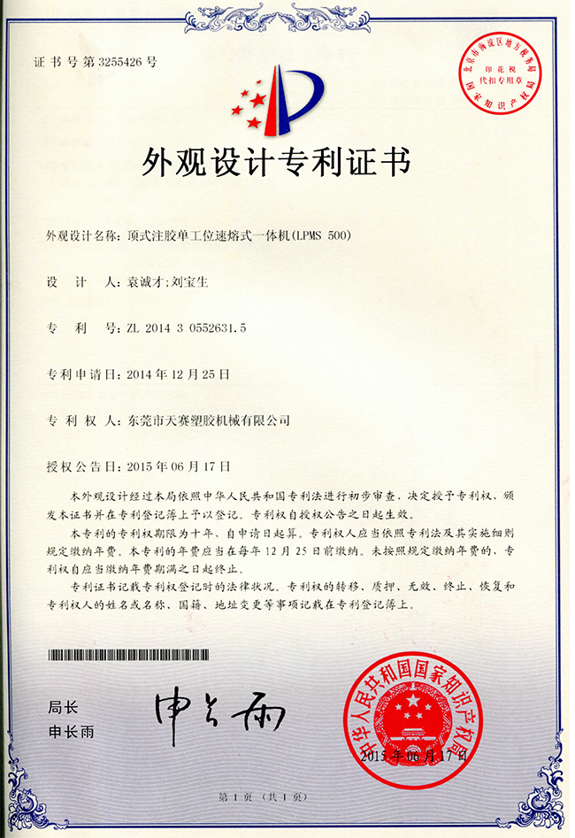 東莞市天賽塑膠機(jī)械有限公司秉持開發(fā)創(chuàng)新、品質(zhì)第一、顧客滿意、持續(xù)改進(jìn)的理念,憑藉接近20年的電子產(chǎn)品防水封裝保護(hù)技術(shù)經(jīng)驗的沉澱和不斷開發(fā)創(chuàng)新的進(jìn)取精神,所研發(fā)的技術(shù)中已經(jīng)幾十項有獲得國家專利,產(chǎn)品更得到市場的一致好評,公司鞏固了天賽在行業(yè)內(nèi)的領(lǐng)先地位。